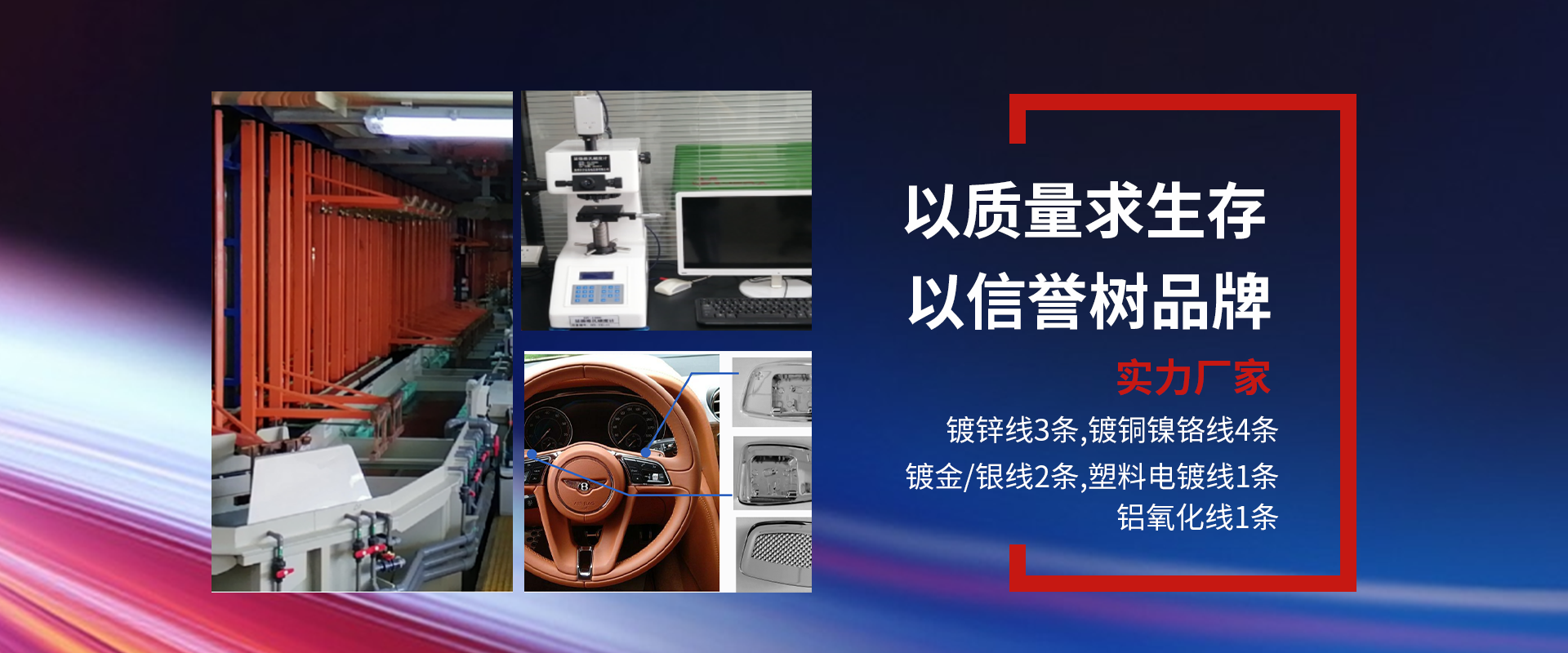 太倉(cāng)市華夏電鍍有限公司位于滬浮橫公路與339省道交匯處,交通十分便利,地理位置好。創(chuàng)辦于1979年10月,原為太倉(cāng)市壽安電鍍廠,2002年改為太倉(cāng)市華夏電鍍有限公司,企業(yè)的性質(zhì)為股份制企業(yè),本公司占地面積約18000平方米,建筑面積10000平方米。固定資產(chǎn)9000萬,公司擁有12個(gè)車間和新的辦公大樓一幢,其中有鍍鋅線3條,鍍銅鎳鉻線4條,鍍金、銀線2條,塑料電鍍線1條,鋁氧化線1條。已經(jīng)建造完工新的污水處理設(shè)施一套,月污水處理能力達(dá)到15000噸,為了達(dá)到環(huán)保要求,電鍍車間所用的蒸汽全部與港區(qū)電廠蒸汽直接聯(lián)通,即環(huán)保,又方便。公司經(jīng)營(yíng)范圍廣泛。有鍍金、銀、錫、銅、鎳、鉻、鋅等終端客戶大眾,通用等。